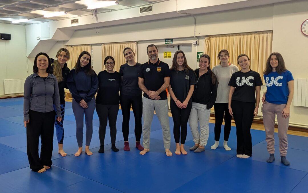 Hoy una entrada rápida para enseñaros a las chicas que han venido a tener su primer contacto con la Defensa Personal a través del nuevo taller que empezó ayer mismo en la Universidad de Cantabria. Fue una buena sesión que sentó las bases de lo que se trabajará en las próximas 4 sesiones del curso. ¡Ya están deseando volver!